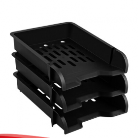 广博/GuangBo W34001ES文件筐A4三层文件盘黑色一体式组合设计自由拆卸文件筐文件夹文件座