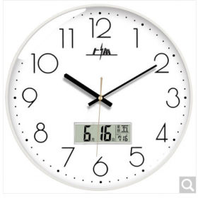 上海牌66609 钟表 挂钟客厅万年历钟表北欧简约石英钟表挂墙卧室时钟薄边日历挂表 66609带日历白框白底(直径26cm).