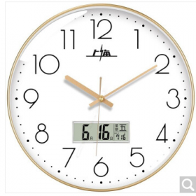 上海牌 66609 钟表 挂钟客厅万年历钟表北欧简约石英钟表挂墙卧室时钟薄边日历挂表 66609带日历轻奢金(直径26cm).