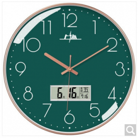 上海牌 66609 钟表 挂钟客厅万年历钟表北欧简约石英钟表挂墙卧室时钟薄边日历挂表 66609带日历镀金绿(直径26cm).