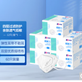 振德/ZD KN95 防护口罩 一次性口罩 成人C型非灭菌独立装白色12只/盒*5盒 挂耳式自吸过滤式防颗粒物.