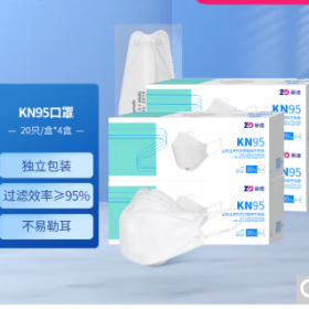 振德/ZD KN95 防护口罩 成人防护口罩 非灭菌独立防护舒适透气 白色 20只/盒*4盒.