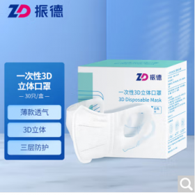 振德/ZD 3D330 防护口罩 一次性口罩3D立体防护口罩 成人白色M码30只/袋 亲肤柔软修饰脸型不易勒耳 三层防护防尘.