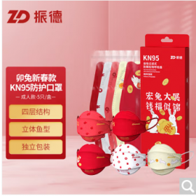 振德/ZD KN95 防护口罩 一次性成人KN95口罩 兔年新年款 混色装5只/盒.