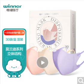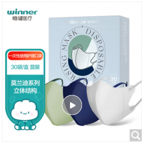 稳健/Winner 604-010084 防护口罩 一次性3d立体口罩独立装30只/盒莫兰迪成人柔耳三层防护细菌过滤率大于95%.