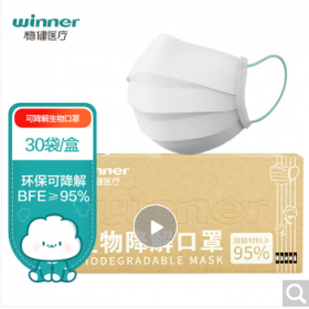 稳健/Winner 604-010105 防护口罩 一次性口罩成人口罩环保独立装30只/盒 白色款可降解口罩 三层防护亲肤透气细菌过滤率大于95%.