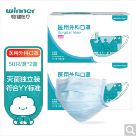 稳健/Winner 604-005326 防护口罩 一次性外科口罩灭菌独立装100只 3层挂耳50袋/盒*2盒装.
