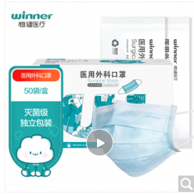 稳健/Winner 604-005326 防护口罩 一次性医用外科口罩灭菌级独立包装50只/盒 三层防护口罩细菌过滤率大于95%.