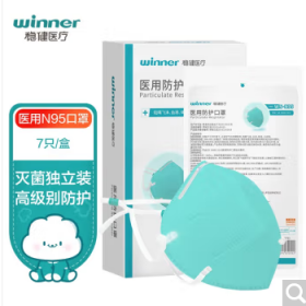 稳健/Winner 604-008783-01 防护口罩 WN-N95口罩防护口罩 灭菌级五层防护3D立体头戴式 绿色款独立装7袋.