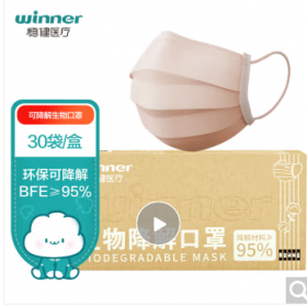 稳健/Winner 604-010194 防护口罩 一次性口罩成人口罩环保独立装30只/盒 粉色款可降解口罩 三层防护亲肤透气细菌过滤率大于95%.