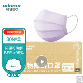 稳健/Winner 604-010193 防护口罩 一次性口罩成人口罩环保独立装30只/盒 紫色款可降解口罩 三层防护亲肤透气细菌过滤率大于95%.