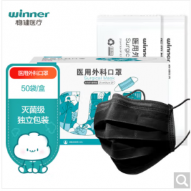 稳健/Winner 604-009029 防护口罩 一次性口罩医用外科口罩 黑色灭菌独立装50只/盒 三层防护细菌过滤率大于95%.