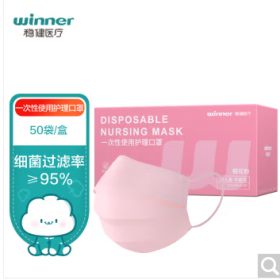 稳健/Winner 604-009844 防护口罩 一次性使用成人护理口罩50只/盒 环保独立装成人款樱花粉三层防护亲肤透气细菌过滤率大于95%.
