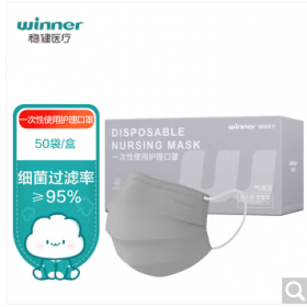 稳健/Winner 604-009843 防护口罩 一次性使用成人护理口罩50只/盒 环保独立装成人款气质灰三层防护亲肤透气细菌过滤率大于95%.