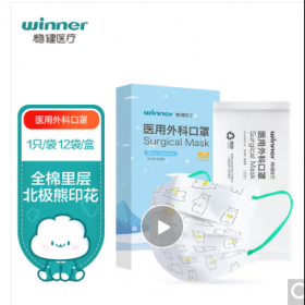 稳健/Winner 604-008427 防护口罩 一次性外科口罩12只/盒 灭菌级独立装海洋日北极熊印花三层防护棉里层亲肤透气舒适不勒耳.