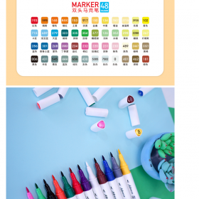 真彩/Truecolor MK3179 书写用笔类用具 文具12色双头三角杆可水洗软头马克笔套装学生手绘漫画设计 粉桶装/盒 MK3179