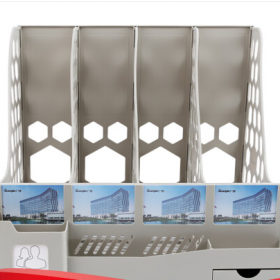 广博/GuangBo WJK9269 文件筐带多功能笔筒四联资料架/文件框/文件筐/ 灰