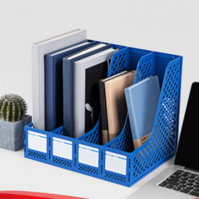 广博/GuangBo W34009文件筐四联镂空桌面文件框 加厚款四栏带标签稳固文件架/文件栏/资料框 蓝色