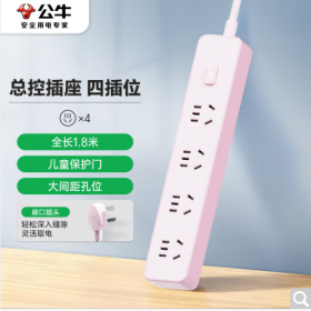 公牛/BULL GN-Z1041 插座 新国标插座/插线板/插排/排插/接线板/拖线板 Z世代 4位总控全长1.8米 GN-Z1041 樱花粉