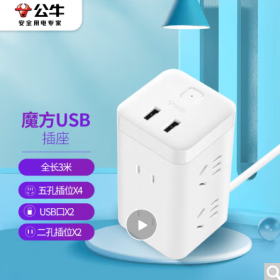 公牛/BULL GNV-UU2126 插座 大魔方智能USB插座 插线板/插排/排插/接线板/拖线板 白色魔方USB插座全长3米