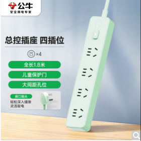 公牛/BULL GN-Z1041 插座 新国标插座/插线板/插排/排插/接线板/拖线板 Z世代 4位总控全长1.8米 GN-Z1041 薄荷绿