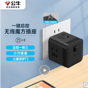 公牛/BULL GNV-M103W 插座 小魔方插座 一转三转换器/插线板/插排/排插/接线板 3位 黑色 无线魔方