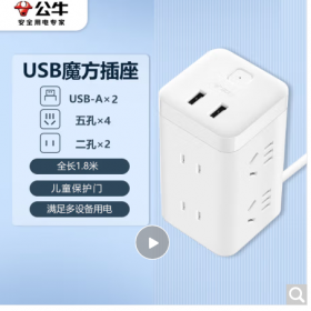 公牛/BULL GNV-UU2126 插座 大魔方智能USB插座 插线板/插排/排插/接线板/拖线板 白色魔方USB插座全长1.8米