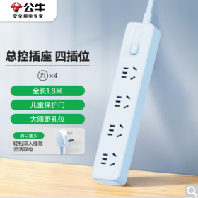 公牛/BULL GN-Z1041 插座 新国标插座/插线板/插排/排插/接线板/拖线板 Z世代 4位总控全长1.8米 GN-Z1041 海盐蓝