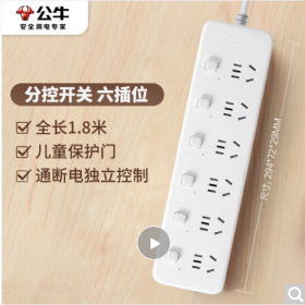 公牛/BULL GN-B2063 插座 新国标分控插座/插线板/插排/排插/接线板/拖线板 6位分控全长1.8米 独立开关