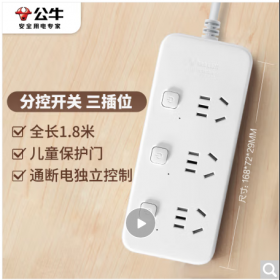 公牛/BULL GN-B2033 插座 新国标分控插座/插线板/插排/排插/接线板/拖线板 3位分控全长1.8米 独立开关
