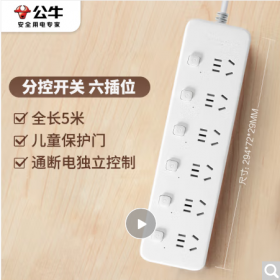 公牛/BULL GN-B2063 插座 新国标分控插座/插线板/插排/排插/接线板/拖线板 6位分控全长5米 独立开关