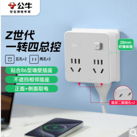 公牛/BULL Z93221 插座 86型转换插头/插座/转换插座/电源转换器 一转四转换插头 4位总控开关 晨雾白