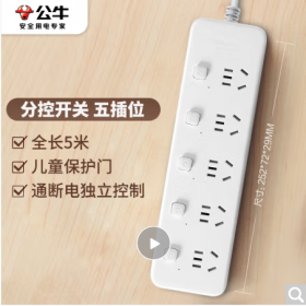 公牛/BULL GN-B2053 插座 新国标分控插座/插线板/插排/排插/接线板/拖线板 5位分控全长5米