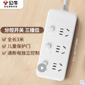 公牛/BULL GN-B2033 插座 新国标分控插座/插线板/插排/排插/接线板/拖线板 3位分控全长3米 独立开关