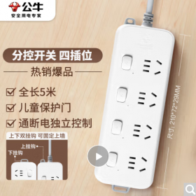 公牛/BULL B3043 插座 插座/插线板/插排/排插/接线板/拖线板 4位分控开关全长5米