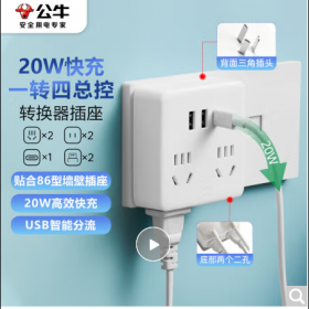 公牛/BULL GN-9322KQ 插座 20W PD苹果快充86型转换插头/插座/转换插座/电源转换器 一转四转换插头 4位总控+USB