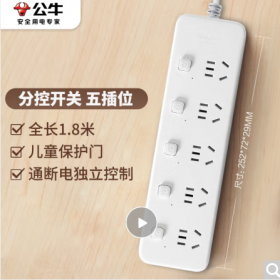 公牛/BULL GN-B2053 插座 新国标分控插座/插线板/插排/排插/接线板/拖线板 5位分控全长1.8米 独立开关