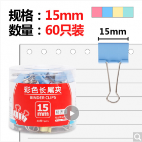 晨光/M&G ABS92712 长尾夹 15mm彩色长尾夹 金属票据夹 办公用品燕尾夹 60个装ABS92712